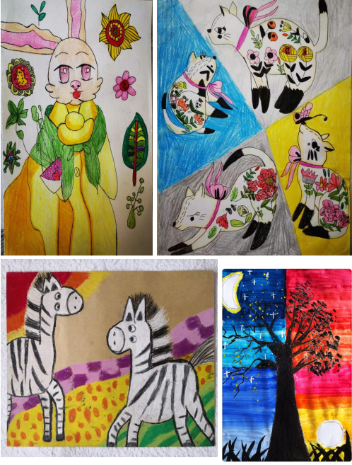 学生工作室曹沈磊与一群热爱画画的同学,热衷于各种绘画创作,其中不乏一些优秀的作品。曹沈磊的绘画作品《动物世界》、《猫夫人》、陈嘉仪的绘画作品《相亲相爱》、郑梓盈的绘画作品《生命树》参与了“牵手艺术彩虹,献给未来地球”慈善创意教育项目投稿,获得好评。