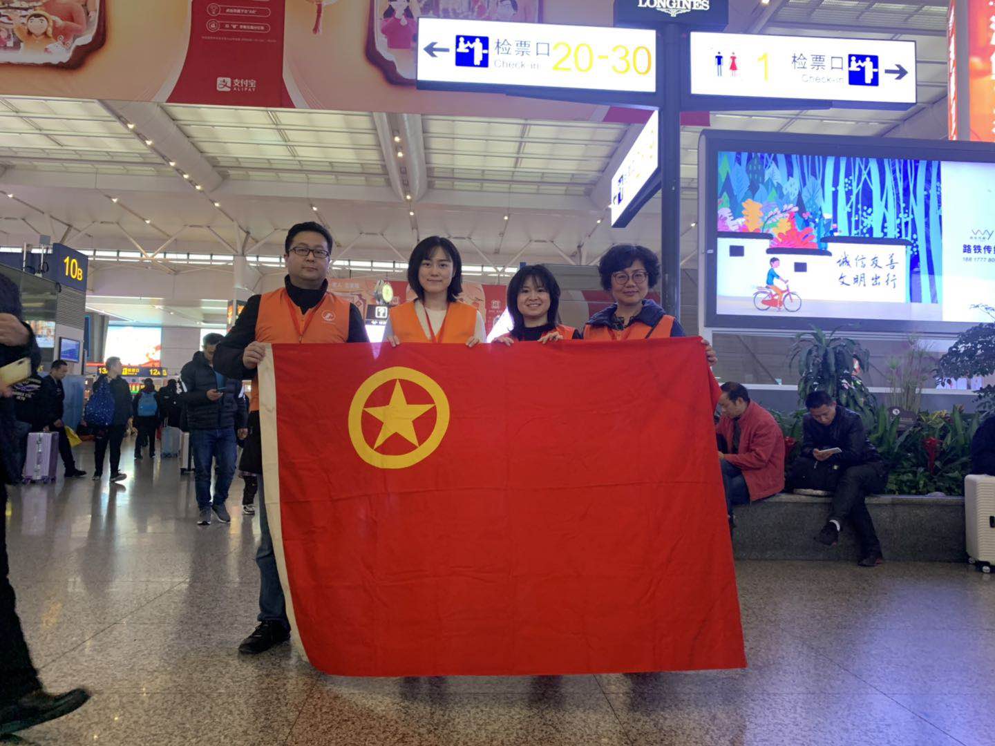 在2020年春运到来之际,长宁特职校积极响应长宁教育党工委号召,组织学校“阳光志愿者”服务队的四名党团员老师参加了2020年教育系统“温暖回家路”——春运平安返乡志愿者活动。