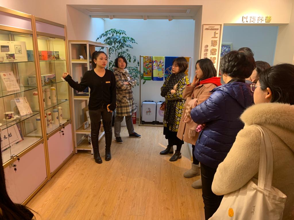 恩理禾艺术馆旨在通过以商养善的方式帮助有绘画天赋和梦想的星星的孩子,即自闭症孩子,实现他们的艺术梦想。从2019年初初识艺术馆至今,我们学校里已经有好几名孩子的画作被搬进了艺术馆的展厅里,有的甚至已经做成了衍生文创产品。2020年1月15日,长宁特职党团员教师一行前往艺术馆进行参观活动,艺术馆的工作人员亲切地接待了我们,并为我们作了引导和讲解,让我们近距离地感受孩子们的作品,近距离地感受恩理禾艺术馆给孩子们生活带来的改变。